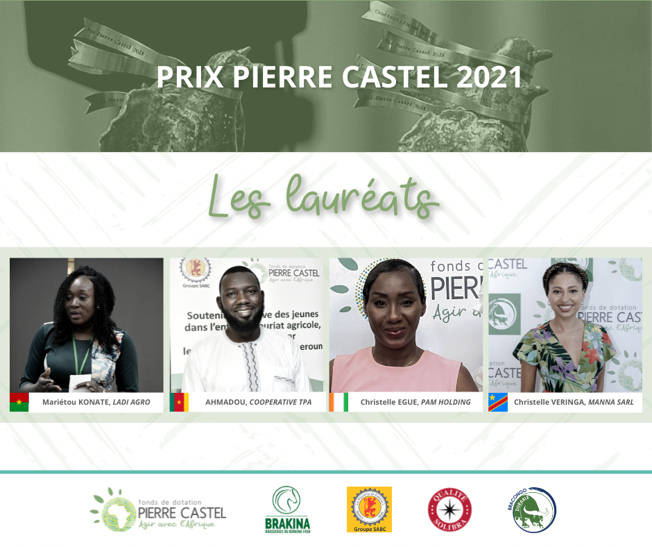 Initiative lancée au Cameroun, au Burkina Faso, en RD Congo et en Côte d’Ivoire par « le fonds de dotation Pierre Castel, agir avec l’Afrique », le Prix Pierre Castel soutient et accompagne financièrement des projets portés par de jeunes entrepreneurs africains dans les domaines de l’agriculture, l’agroalimentaire, l’agritech et l’agro-ressource, présentés comme des filières à forte valeur ajoutée et facteurs de réduction de la pauvreté sur le continent noir.