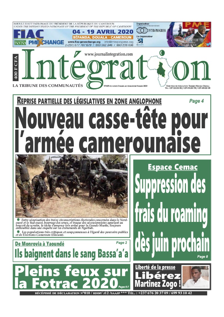 Reprise partielle des législatives en zone anglophone, Législatives 2020, Hold-Up communal à Sangmelima, Assainissement du fichier solde, Saccage des ambassades, Gouvernement et Ongs internationales, Agro-Industrie, Gouvernance, Fenassco ligue ‘’ A’’… Sont entre autres sujets qui meulent de l’actualité.